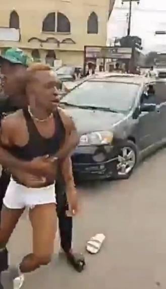 As if that is not enough, he pulled off his wristwatch, shirt and trouser, before onlookers rushed to stop him from getting naked completely.